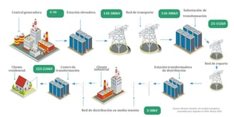 La actividad de distribución de energía eléctrica o red de transporte secundario está constituida por las líneas, parques, transformadores y otros elementos eléctricos con tensiones nominales iguales o inferiores a 220 kV no incluidas en la red primaria y es competencia de las empresas distribuidoras de energía eléctrica que son las responsables de construir, operar y mantener las redes de energía eléctrica de las que son titulares.