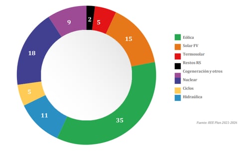 El gráfico circular representa la contribución de cada tecnología a la cobertura de la demanda (en %)